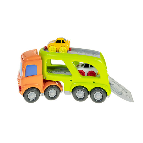 Mówiące Auto z Lawetą jest bezpieczną zabawką już dla rocznego dziecka. Może się nią bawić także starsze dziecko (zabawka rekomendowana do 5-go roku życia). Auto Laweta mówi po polsku frazy związane tematycznie z zabawą w samochody np.; „Kończy się paliwo”, „Jaki straszny korek”. Auto ma dwupoziomową lawetę na którą można wjechać dzięki opuszczanej z tyłu auta pochylni. Po naciśnięciu dachu wydaje realistyczne dźwięki. Dwa małe autka dołączone do zestawu mogą się ze sobą łączyć za pomocą magnesów.