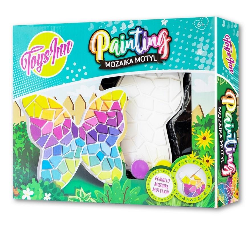 Mozaika Motyl to doskonały pomysł na kreatywne spędzenie czasu. Oryginalnie pokolorowana mozaika będzie wyjątkową ozdobą pokoju lub prezentem dla bliskiej osoby. Zestaw z płaską figurką motyla zawiera: 5 farb, pędzelek, 2 papierowe tacki. Wiek: +6