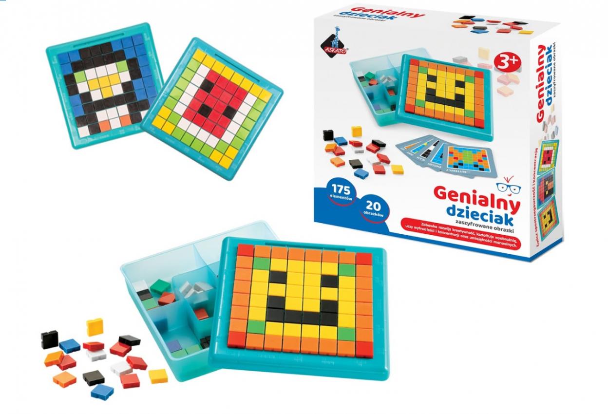 Dzięki wczesnym zabawom w odwzorowywanie - nauka czytania i pisania będzie ?atwiejsza do opanowania i utrwalenia. Należy użyć kolorowych pikseli znajdujących się w zestawie, aby odszyfrować obrazek. Zestaw zawiera aż 175 elementów. Są to kwadraty przypominające piksele w 7 kolorach. Do zestawu dołączone jest 20 obrazków do odszyfrowania i odwzorowania. POLSKIE OPAKOWANIE!