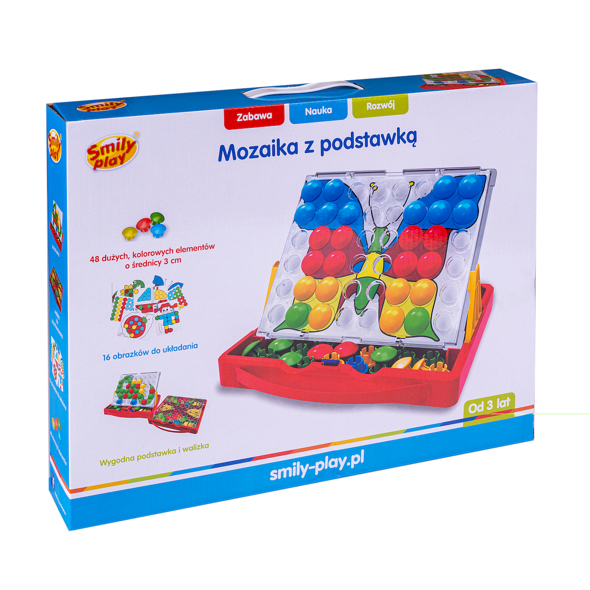 48 dużych, kolorowych elementów o średnicy 3 cm.