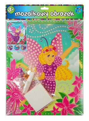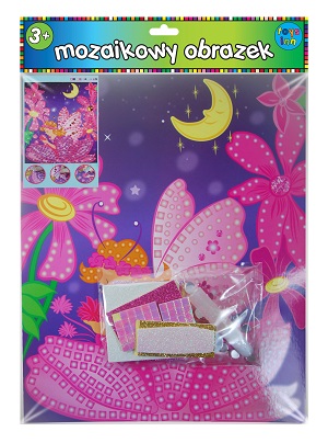 Stwórz własny obrazek, przyklejając kolorowe dekoracje na odpowiednie pola! Zestaw zawiera: - kolorowy obrazek o wym.25,4x30,5 cm, - kartonową podstawkę, - kolorowe pianki samoprzylepne, - kolorowe dżety, - kółeczka klejące , - klej brokatowy. Zabawka dla dzieci w wieku od 3 lat.