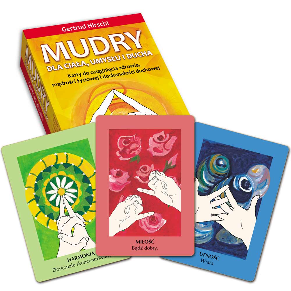 Mudry to uzdrawiające układy dłoni stosowane w uzdrawianiu energią. Wystarczy kilka minut, by joga dłoni zwiększyła przepływ energii życiowej w twoim ciele. Mudry mają korzystny wpływ na wiele dolegliwości i obniżają poziom stresu. Teraz możesz skorzystać z ich mocy dzięki pierwszej na polskim rynku talii 68 kart. Talia została opracowana przez światowy autorytet w dziedzinie mudr i jogi. Każda karta jest opatrzona mudrą: życia, powodzenia, kundalini oraz opisem jej działania. Towarzyszy jej również wizualizacja i afirmacja. W dołączonej do kart książeczce z instrukcjami znajduje się oprócz cennych wskazówek jak pracować z mudrami również indeks schorzeń ciała i ducha, które mudry mogą uzdrowić. Wyzwól uzdrawiającą energię każdej z 68 mudr.