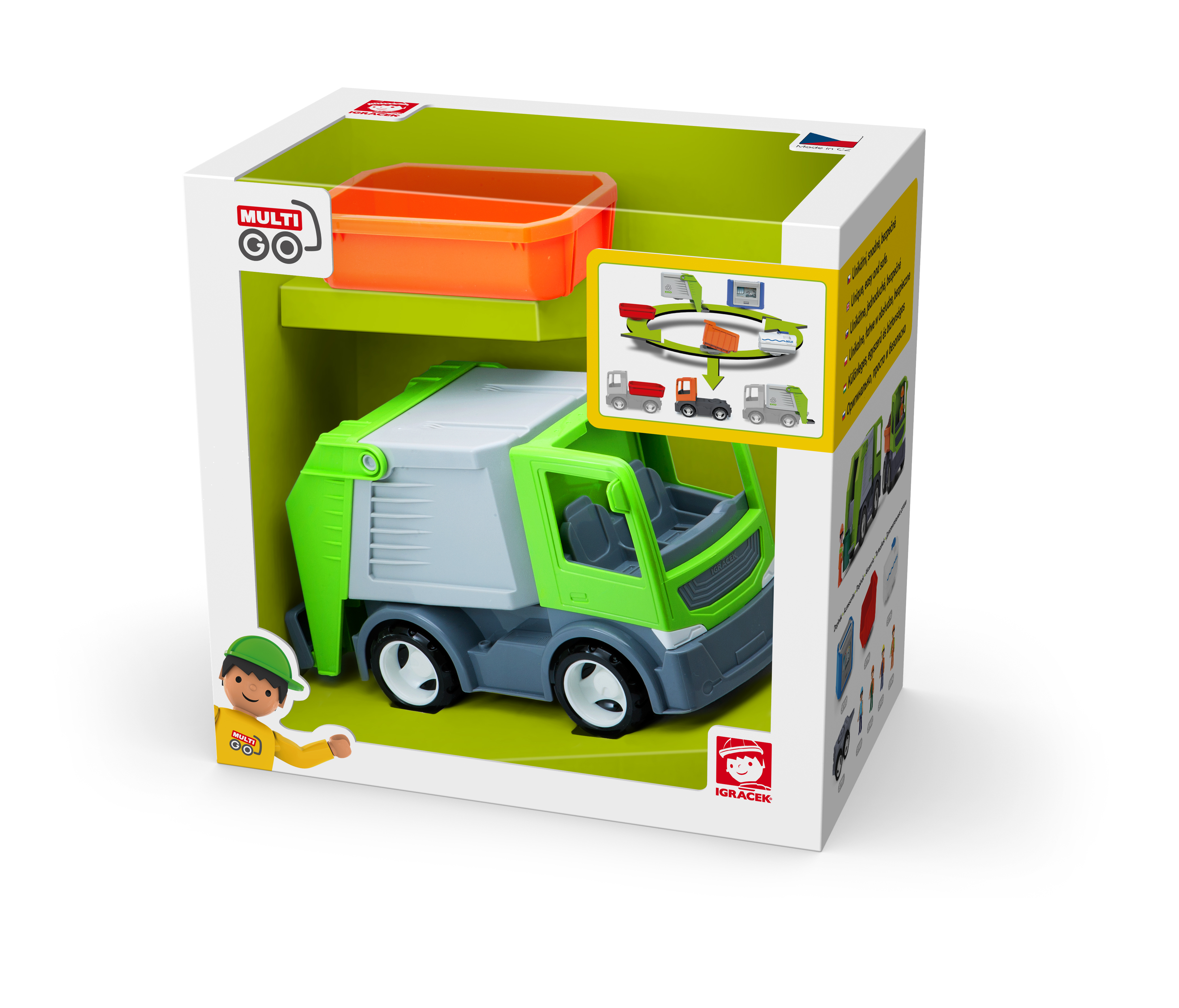 MultiGO to linia samochodów ciężarowych z poręcznym systemem bayonet, który umożliwia małym dzieciom wymianę rozszerzeń i innych