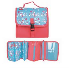 Zestawy kreatywne „MILAN KITS” stworzone specjalnie dla dzieci i z myślą o nich. To seria produktów do rysowania i malowania, które rozwijają kreatywność. Łączą w sobie naukę z zabawą. Idealne do przedszkola, szkoły, ale także w domu, podróży czy na wakacjach. W środku 4 piórniki z wyposażeniem przyczepiane na rzepy, które można używać osobno lub jako całość. Wyposażenie: 18 flamastrów ze stożkową końcówką, 12 kredek trójkątnych, 3 długopisy, ołówek HB, temperówka BASIC, 2 gumki syntetyczne MILAN, linijka. Kolekcja BLOSSOM model:08820BLS Materiał wierzchni: poliester, podszewka: poliester.