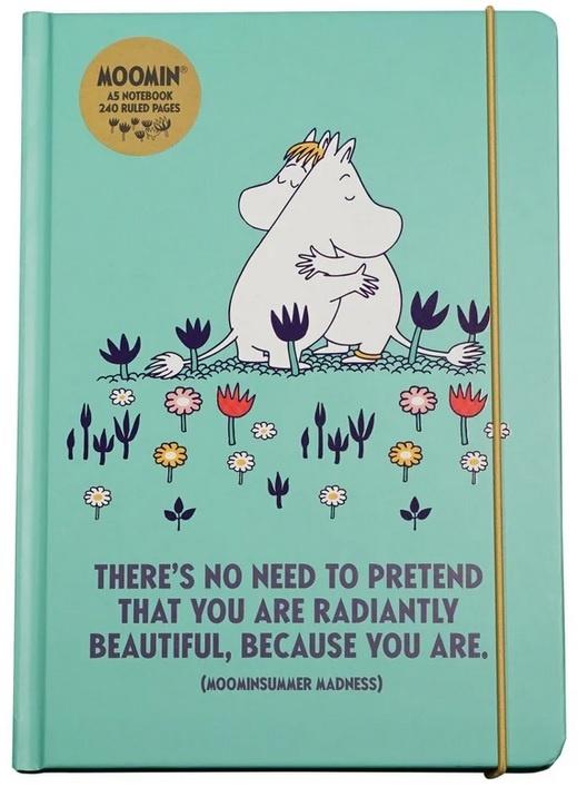 Notatnik A5 linia twardy z gumką - Miłość (Hug) - Muminki (Moomin) przenosi magiczny świat Muminków w codzienność, oferując nie tylko praktyczność, ale też artystyczne wykończenie. Okładka prezentuje wzruszającą scenę "Hug", która oddaje ciepło i bliskość charakterystyczne dla rodzinnych więzi w Dolinie Muminków. Ten wysokiej jakości notes, wykonany z papieru z certyfikatem FSC, dostępny wyłącznie w ofercie Half Moon Bay, łączy estetykę z trwałością.