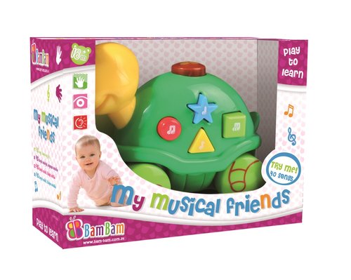 Interaktywna zabawka MUZYCZNY ŻÓŁW przeznaczona jest dla dzieci powyżej 18 miesiąca życia. Aż 40 melodyjek wraz z migoczącymi przyciskami zapewni zarówno długą zabawę dziecku, jak i umożliwi rozwój zdolności wizualnych i słuchowych. Mozliwość zmiany melodii poprzez naciskanie migoczących przycisków rozwija koordynację ruchową i zdolności manualne.