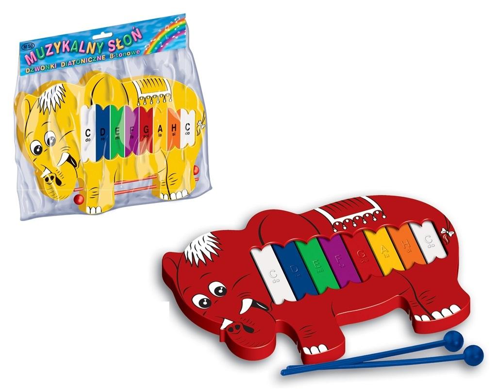 Kolorowe, wesołe cymbałki dla najmłodszych wirtuozów, słoń, 8 tonów.