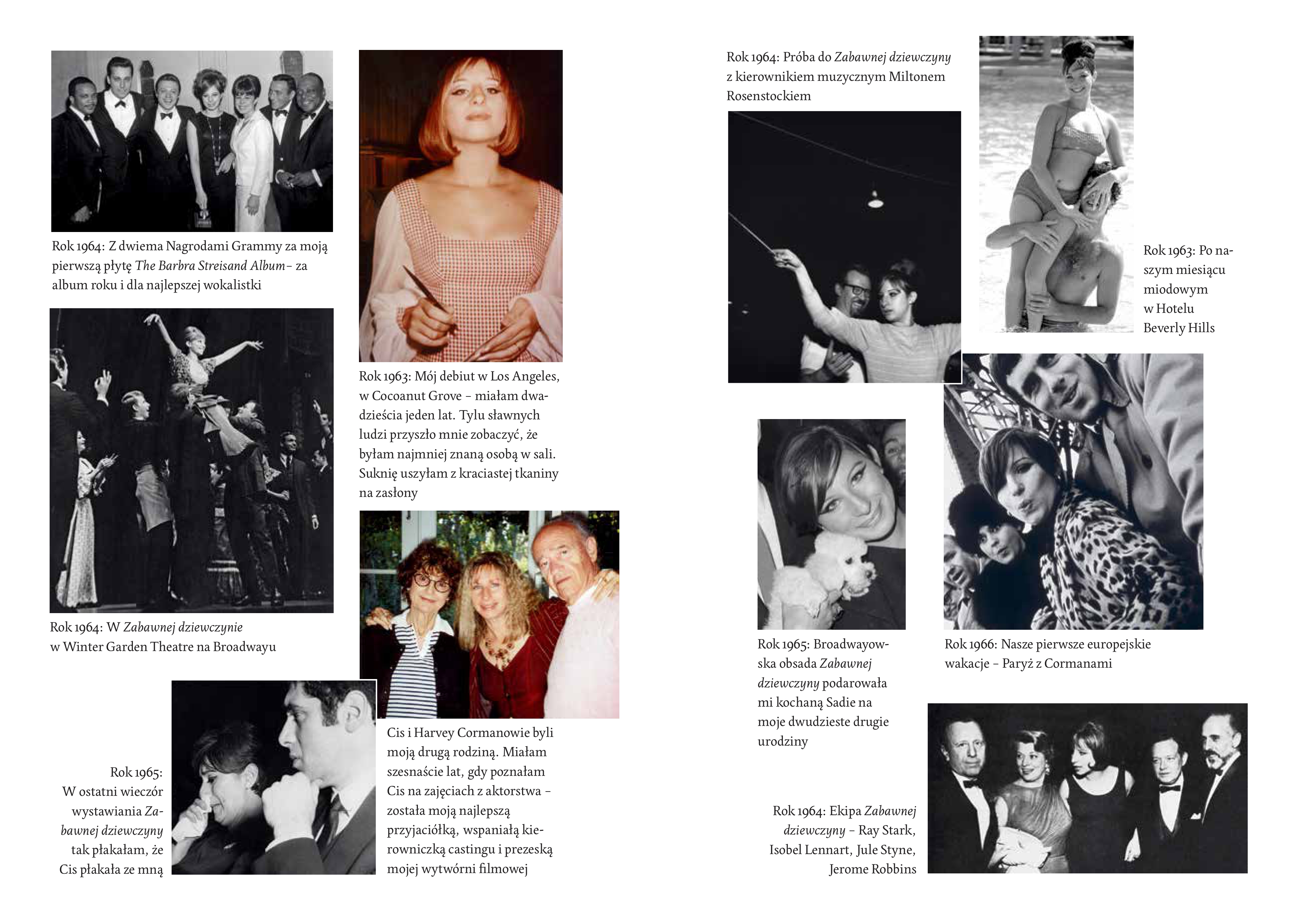 Wyczekiwane wspomnienia jednej z największych gwiazd muzyki i filmu XX wieku Barbra Streisand – absolutna ikona, nowojorska diwa i jedna z nielicznych artystek, które zdobyły cztery najważniejsze nagrody branży rozrywkowej: Emmy, Grammy, Oscara i Tony – własnymi słowami opowiada o drodze, która doprowadziła ją na największe światowe sceny. Mówi o dzieciństwie naznaczonym stratą ojca i emocjonalnym chłodem matki, o dojmującym poczuciu bycia niewystarczająco dobrą, o wślizgnięciu się do branży tylnymi drzwiami – mimo braku pieniędzy, koneksji, odpowiedniego wykształcenia i „właściwego” wyglądu – oraz o mozolnym zdobywaniu miejsca w świecie, który długo nie chciał jej przyjąć. Od występów w manhattańskich klubach i na scenach off-off-broadwayowskich, przez pierwsze single i przełomową rolę w Zabawnej dziewczynie, aż po kontrakty z czołowymi wytwórniami muzycznymi i hollywoodzkie superprodukcje – Streisand ujawnia kulisy kariery, w której z czasem coraz częściej dyktowała własne warunki. Ważną rolę w jej historii odgrywają ludzie, którzy ją zrozumieli i wyciągnęli pomocną dłoń: Judy Garland, Marlon Brando, Robert Redford, Tennessee Williams czy Sydney Pollack. Bezkompromisowe i inspirujące życie Streisand to świadectwo tego, jak wiele znaczą odwaga, intuicja i wierność sobie. A jej książka – dowcipna i czarująca jak sama Barbra – przypomina, że by zbudować coś wielkiego, potrzeba nie cudów, lecz konsekwencji.