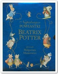 Ta piękna i wyjątkowa książka to zbiór barwnych historyjek o zabawach, ciekawskich i psotnych zwierzątkach oraz ich perypetiach w scenerii wiktoriańskiej Anglii. To świat opowiedziany i namalowany przez niezwykłą autorkę, której pasją było obserwowanie natury. Dzięki swej wyjątkowej wyobraźni i wrażliwości na świat przyrody, a także dzieki niewątpliwemu talentowi literackiemu i malarskiemu Beatrix Potter zdobyła tysiące miłośników w Anglii i na całym świecie. Na niepowtarzalny styl autorki składają się lekkość pióra, subtelny humor i życzliwa ironia wobec bohaterów: króliczków, wiewiórek, myszek, jeży, którym nadała ludzkie cechy. Niezrównane tłumaczenie Małgorzaty Musierowicz przenosi polskich czytelników na pogranicze bajki, do dawnego, tradycyjnego świata. Dzieki kunsztowi przekładu klasyczna książka dla dzieci zachwyca odbiorców wkażdym wieku - na zawsze.