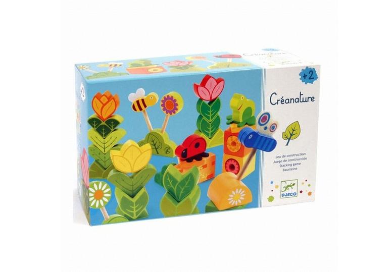Kolorowe drewniane klocki do nakładania aby stworzyć piękny ogród: kwiaty, owady, nic tu nie brakuje! Zabawka drewniana edukacyjna. Wiek:2+ Materiał: drewno Wymiary:30x18x12 cm