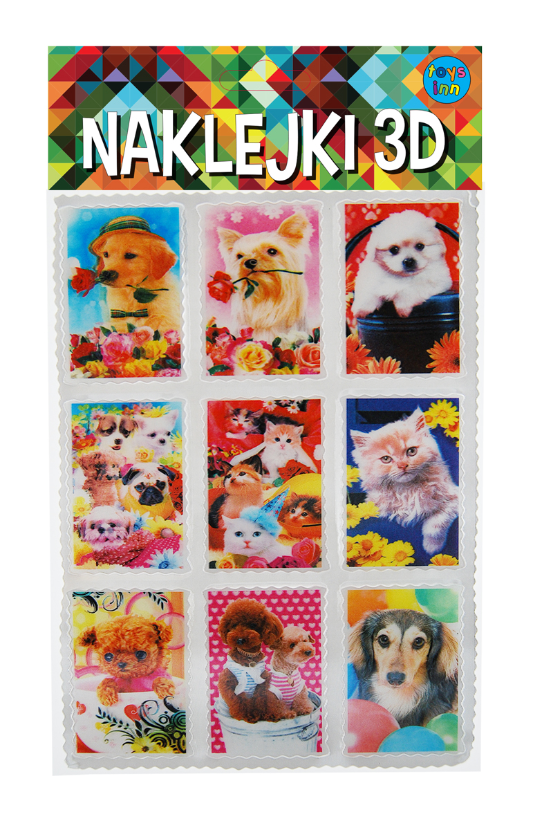 Naklejki 3 D (psy , koty), 9 naklejek o wym. 5cmx 3cm (9 róznych wzorów)