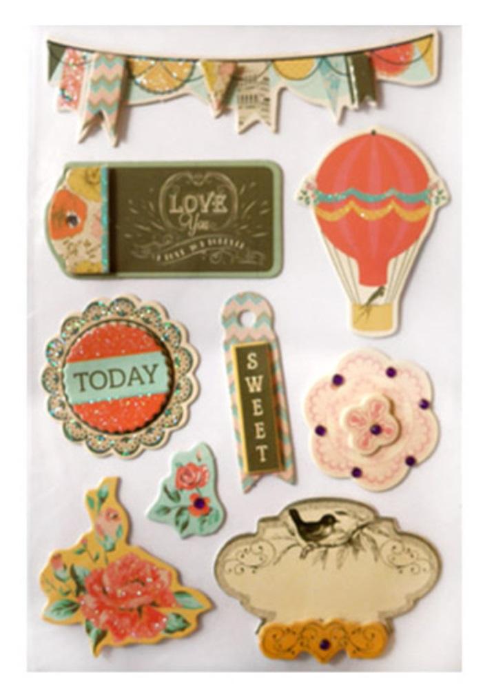 Naklejki samoprzylepne 9szt.- balon, Sweet (efekt 3D), stanowią doskonałe uzupełnienie dla wielu technik. Idealnie nadają się do: zdobienia kartek okolicznościowych, zdobienia pamiętników, zdobienia zaproszeń, karnetów, zdobienia albumów techniką Scrapbooking, wykańczania prac przyozdobionych techniką Decoupage