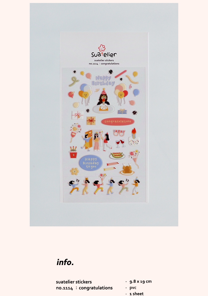 "Naklejki ozdobne Urodziny koreańskiej marki Suatelier.