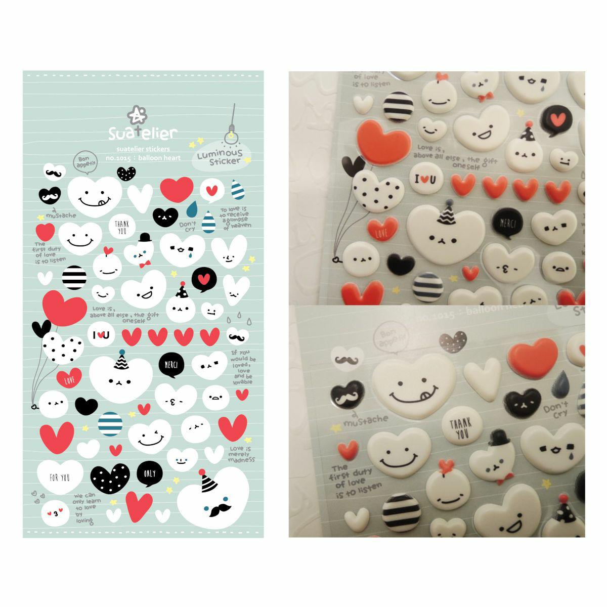 Naklejki ozdobne wypukłe Serca Lumi koreańskiej marki Suatelier. Białe naklejki po naświetleniu świecą w ciemnościach!