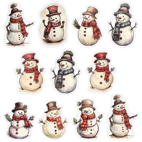 Naklejki papierowe na taśmie 8 wzorów Boże Narodzenie bałwanki mix rozmiarów 250szt.