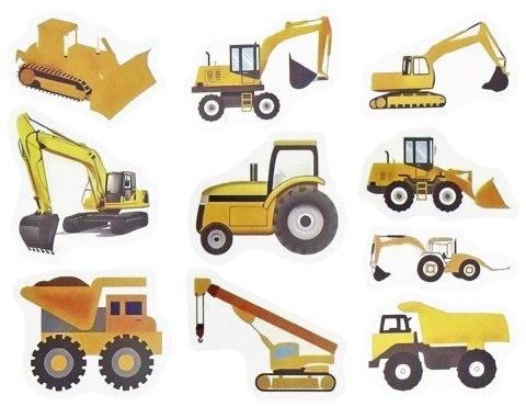 Naklejki papierowe na taśmie 8 wzorów maszyny budowlane mix rozmiarów żółto-czarne 500szt.