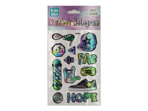 Naklejki holograficzne Fab, to idealna dekoracja pamiętników, albumów, zeszytów czy telefonów. W zestawie znajduje się około 10 szt kolorowych naklejek o różnych kształtach. Holograficzna powłoka z efektem tęczy zmienia ich kolory w zależności od kąta padania światła, dzięki temu naklejki są oryginalną, przyciągającą wzrok ozdobą. Naklejki wykonane zostały z wysokiej jakości materiałów, które są trwałe i odporne na zniszczenia