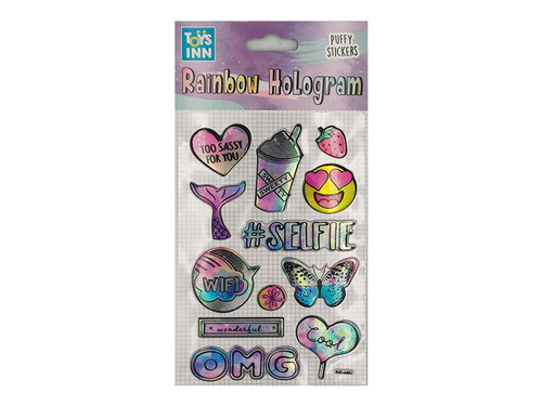 Naklejki holograficzne Selfie, to idealna dekoracja pamiętników, albumów, zeszytów czy telefonów. W zestawie znajduje się około 10 szt kolorowych naklejek o różnych kształtach. Holograficzna powłoka z efektem tęczy zmienia ich kolory w zależności od kąta padania światła, dzięki temu naklejki są oryginalną, przyciągającą wzrok ozdobą. Naklejki wykonane zostały z wysokiej jakości materiałów, które są trwałe i odporne na zniszczenia
