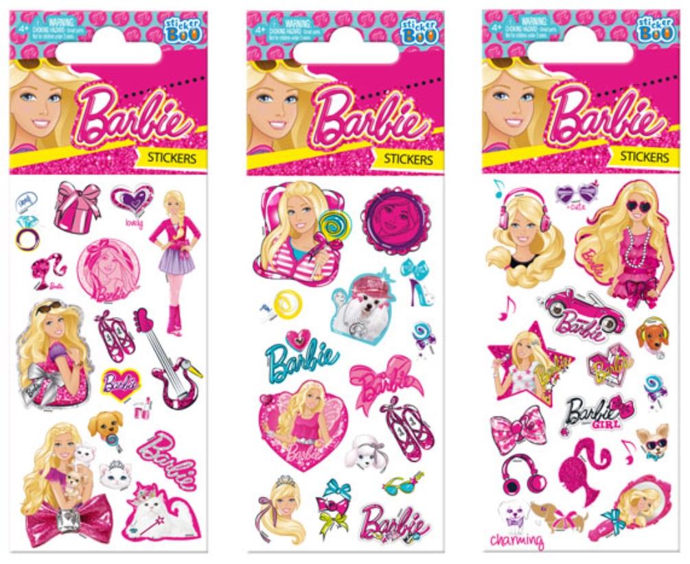 Naklejki z postaciami Barbie, ozdobione laserowym mieniącym się ''hologramem''