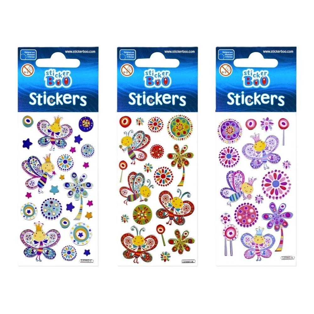 Naklejki STICKER BOO z grafiką z Motylkami z pewnością przypadną do gustu dzieciakom, idealne do zdobienia rysunków, wszelkiego rodzaju prac plastycznych oraz kolekcjonowania, naklejki ze złotą obwódką. Dostępne w 3 odsłonach graficznych.