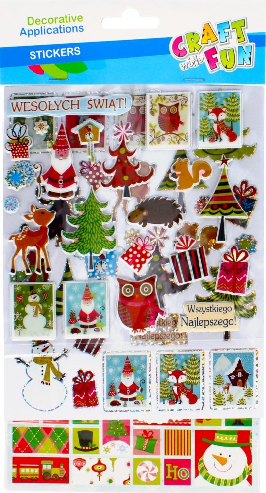 Zalety produktu: doskonale nadają się do zdobienia kartek okolicznościowych, albumów lub wystroju wnętrza, idealne do zdobienia świątecznych prezentów. Naklejki dekoracyjne CRAFT WITH FUN to fantastyczna i kreatywna zabawa, która pobudzi wyobraźnię. Używaj tych produktów w połączeniu z innymi akcesoriami oraz kompletami z serii CRAFT WITH FUN! Zawartość opakowania: 3 woreczki z mixem naklejek.