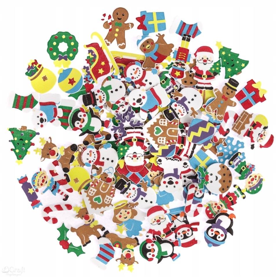Naklejki z pianki "Magiczne Święta" są doskonałe do pobudzenia kreatywności i rozwijania dziecięcej twórczości. Ten duży zestaw naklejek zawiera rozmaite zimowo-świąteczne motywy m.in. domki z piernika, aniołki, choinki, prezenty, misie polarne, pingwinki, elfy oraz reniferki.