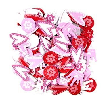 Zestaw naklejek z pianki z nadrukiem, z motywami serc, koron i kwiatków.