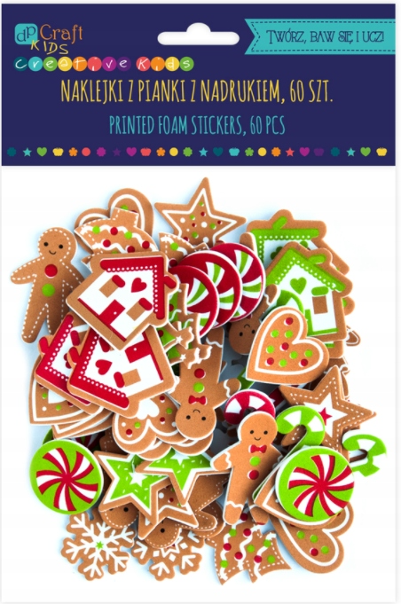 Naklejki z pianki z nadrukiem Pierniczki i cukierki (60 szt)