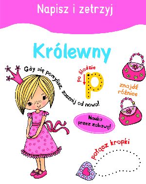 Dzięki tej książeczce i dołączonemu flamastrowi nauczysz się pisać cyfry i litery, a także rysować królewny - ponadto znajdziesz różnicę między obrazkami i rozwiążesz zagadki.Gdy zrobisz opracowane ćwiczenia, wszystko możesz zetrzeć ze specjalnych suchościeralnych stron i zacząć zabawę od nowa!W serii ""Napisz i zetrzyj"" ukazały się tytuły: Maszyny, Królewny, Zwierzęta, Dinozaury