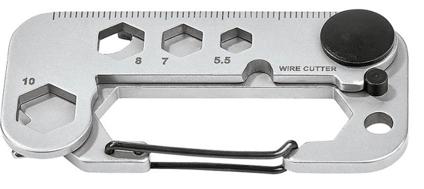 Zapięcie - karabinek pozwala, że narzędzie można łatwo przymocować plecaka, torby lub do paska.