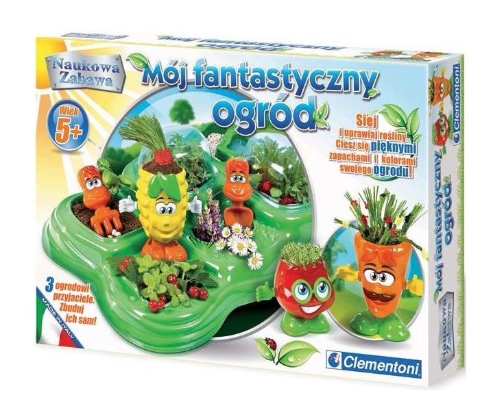 Zabawna szklarnia dla małych ogrodników! Przy pomocy tego naukowego zestawu będziesz mógł odkryć zapachy i kolory ogrodu. Trzy sympatyczne postacie, grabki, łopatka,mnóstwo nasion i ilustrowana książeczka.