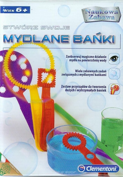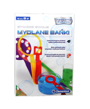 Zestaw do bezpiecznego i łatwego odkrywania zasad fizyki, które ukrywają się w bańkach mydlanych. Zaobserwuj magiczne działanie mydła na powierzchnię wody. Wiele zabawnych zadań związanych z mydlanymi bańkami. Zestaw przyrządów do tworzenia dużych i wytrzymałych baniek. Zestaw zawiera: miseczkę, kubek z nakrętką, szpatułkę, glicerynę roślinną, słomki, przyrządy do formowania baniek, ilustrowaną instrukcję.