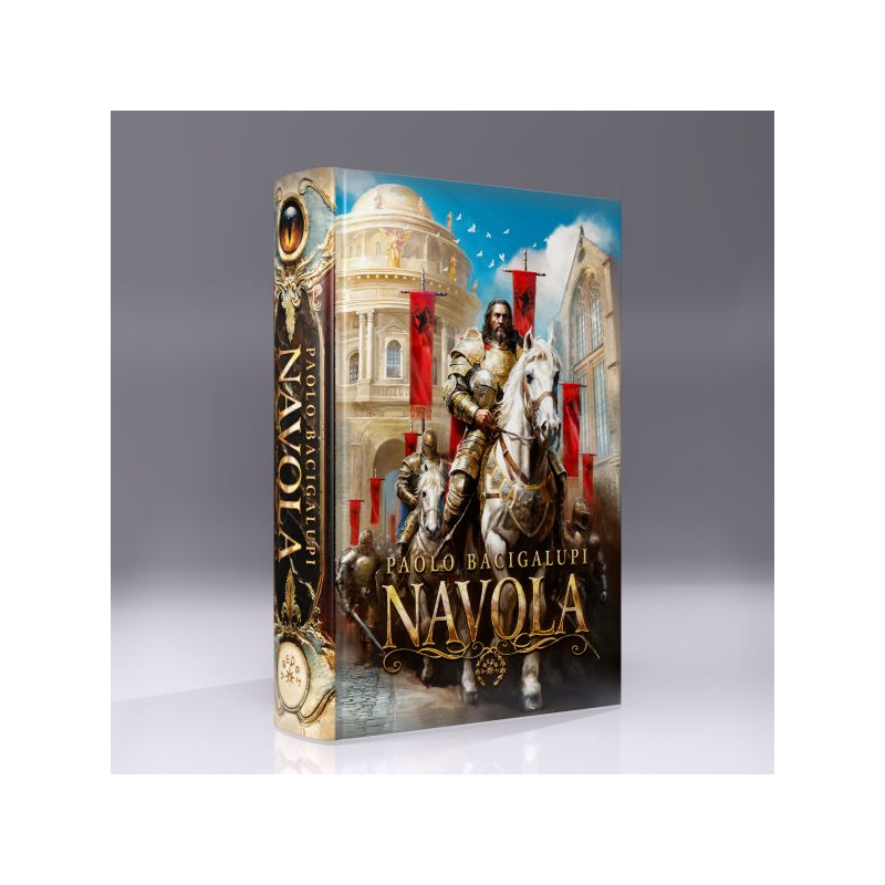 W Navoli, tętniącym życiem mieście-państwie zdominowanym przez garstkę wpływowych rodów, biznes to władza, a władza to wszystko. Przez pokolenia kupcy z rodu di Regulai pielęgnowali swoje wpływy w najdalszych zakątkach znanego świata. I choć twierdzą, że nie są politykami, to ich oszałamiające bogactwo kupowało miasta oraz obalało królestwa. Wkrótce Davico di Regulai obejmie władzę po swoim ojcu i będzie musiał zmierzyć się z intrygami i brutalną polityką innych możnych rodów. Ale za wspaniałą złotą fasadą Navoli kryją się też groźne i tajemnicze siły. Jedną z nich jest będące w posiadaniu rodu di Regulai oko smoka - potężny artefakt surowej mocy i talizman, który wydaje się wzywać młodego Davica do działania. Los młodzieńca zależy od tej starodawnej smoczej relikwii i od tego, co kryje się w sercu jego adoptowanej siostry, Celii di Balcosi, której rodzina została zniszczona przez pokrętną politykę Navoli. Paolo Bacigalupi to amerykański autor fantastyki, którego twórczość zalicza się do nurtu fantastyki ekologicznej i cyberpunka. Znany jest przede wszystkim z takich powieści jak Nakręca dziewczyna, Wodny nóż czy zbioru opowiadań Pompa numer sześć. Laureat licznych nagród, między innymi Nebuli, Hugo, Locusa i Johna W. Campbella. Powieścią Navola odkrywa nowe horyzonty, budując hipnotyzujący świat będący pomieszaniem renesansowych Włoch, Ojca chrzestnego i Gry o tron.