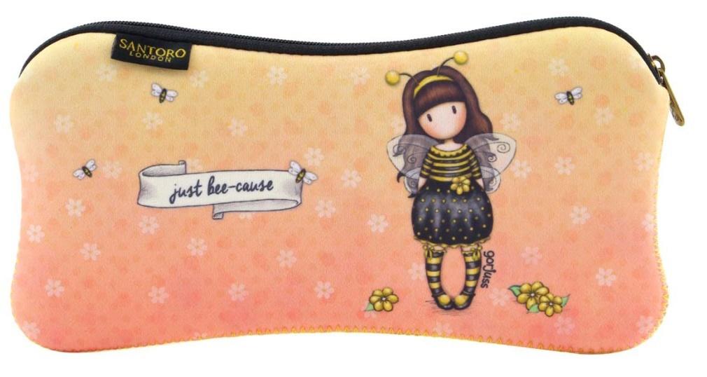 Neoprenowy Futerał - Gorjuss - Bee Loved (Just Bee-Cause). Śliczny neoprenowy futerał, piórnik, saszetka na drobiazgi. Wykonany z miękkiego materiału. Posiada suwak i kolorowe wykończenie wewnątrz. Idealne do przechowywania akcesoriów czy okularów. Uwaga: Trzymać z daleka od ognia!
