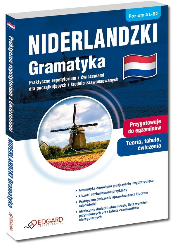dla początkujących i średnio zaawansowanych,- repetytorium dla studentów, słuchaczy szkół językowych, samouków i osób wyjeżdżających do Holandii,- 135 różnorodnych ćwiczeń oraz klucz odpowiedzi,- słowniczek i lista popularnych wyrażeń przyimkowych,- tabela czasowników nieregularnych.Niderlandzki Gramatyka to napisany przystępnym językiem podręcznik z ćwiczeniami i tabelami. Wyczerpująco objaśnia najważniejsze zagadnienia gramatyki języka niderlandzkiego oraz uczy posługiwania się nimi w praktyce.Książka adresowana jest przede wszystkim do samodzielnej nauki, ale doskonale sprawdza się także jako repetytorium gramatyczne do wykorzystywania podczas kursów językowych i pracy z nauczycielem.Repetytorium zawiera objaśnienia najważniejszych zagadnień gramatycznych, m.in. odmianę rzeczownika, przymiotnika i przysłówka, czasy i tryby czasownika, użycie rodzajnika, przyimków, zaimków oraz szyk zdania. Część teoretyczna uzupełniona jest licznymi przykładami zastosowania reguł w praktyce.135 różnorodnych ćwiczeń wraz z kluczem odpowiedzi pozwalają na samodzielne sprawdzanie stopnia opanowania materiału. W książce znajduje się również słowniczek, lista popularnych wyrażeń przyimkowych oraz tabela czasowników nieregularnych.O autorce:dr Katarzyna Wiercińska - absolwentka Katedry Filologii Niderlandzkiej Uniwersytetu Wrocławskiego. Rozprawę doktorską obroniła na Uniwersytecie im. Adama Mickiewicza w Poznaniu, gdzie obecnie pracuje. Od kilku lat prowadzi zajęcia praktyczne z języka niderlandzkiego i historii języka niderlandzkiego.