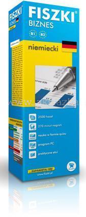 ""FISZKI - Biznes"" zawierają ponad 2500 starannie dobranych specjalistycznych słów i zwrotów. Kurs polecamy pracownikom biurowym, przedsiębiorcom, osobom zamierzającym podjąć pracę za granicą, a także studentom kierunków ekonomicznych i prawniczych, znającym język niemiecki na poziomie średnio zaawansowanym. Słownictwo zostało usystematyzowane w 38 kategoriach tematycznych, które wyczerpująco przedstawiają słownictwo związane z szeroko pojętą ekonomią. Hasła zaprezentowano na 1040 trwałych kartonikach, które zaprojektowano ze szczególną dbałością o prostotę i przejrzystość.