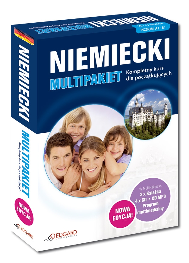 Niemiecki MultiPakiet to:- kompletny kurs języka niemieckiego dla początkujących,- nauka słownictwa, pisowni, rozumienia ze słuchu i gramatyki,- ponad 7 godzin wysokiej jakości nagrań tylko profesjonalni lektorzy,- 2500 słów i zwrotów niezbędnych na co dzień, aby swobodnie mówić i rozumieć,- gramatyka w pigułce słuchaj i ucz się!- w książkach pełny zapis nagrań wraz z tłumaczeniami oraz ćwiczenia utrwalające słownictwo i gramatykę- program multimedialny nauka słówek, interaktywne ćwiczenia, samodzielny trening wymowy,- różnorodne ćwiczenia z kluczem odpowiedzi,- słownik komputerowy ponad 14 000 haseł.Niemiecki MultiPakiet to unikalny kurs do samodzielnej i kompleksowej nauki języka niemieckiego, od poziomu początkującego do średnio zaawansowanego (A1B1). Polecany jest osobom zaczynającym naukę oraz wszystkim, którzy chcą doskonalić językowe umiejętności, poszerzyć zasób słownictwa, poprawić wymowę i nauczyć się prowadzenia swobodnych rozmów z obcokrajowcami.2500 słów i zwrotów aby swobodnie mówić i rozumiećZ MultiPakietem opanujesz podstawowy zasób słownictwa. 2500 wyrażeń wystarczy, aby swobodnie porozumiewać się na co dzień. Książki (łącznie 417 stron) zawierają zestawy słówek i niezbędnych zwrotów, ciekawe dialogi, praktyczne przykłady zastosowania wyrażeń w kontekście, ćwiczenia sprawdzające i utrwalające, dodatkowe słownictwo, pełny zapis nagrań wraz z tłumaczeniami, ciekawostki i testy.Ponad 7 godzin wysokiej jakości nagrań skuteczna nauka rozumienia ze słuchuNagrania profesjonalnych lektorów pozwalają osłuchać się z językiem, poznać prawidłową wymowę, a także ułatwiają zapamiętanie słówek i wyrażeń. Teraz możesz uczyć się samodzielnie w dowolnym miejscu i czasie.Program multimedialny + słownik 14 000 hasełProgram uczy nowych słówek i utrwala zdobytą wiedzę. Zawiera interaktywne ćwiczenia, gry, testy, doskonali umiejętność pisania, rozumienia ze słuchu oraz umożliwia samodzielny i skuteczny trening prawidłowej niemieckiej wymowy. Nowością w programie jest ćwiczenie na obrazkach przyjemna i skuteczna forma nauki. Dodatkowo słownik (14 000 haseł) pozwala sprawdzić znaczenie słów w dowolnym momencie.Gramatyka w pigułce słuchaj i ucz się!MultiPakiet oferuje unikatową płytę z podstawami niemieckiej gramatyki do słuchania. Znajdziesz na niej: przystępne objaśnienie reguł, omówienie najważniejszych zagadnień, m.in. budowa zdania prostego, pytania, przeczenia, rodzajniki, zaimki, deklinacja rzeczownika, czasy przeszłe, liczne przykłady i ćwiczenia. Dodatkowo podręcznik Niemiecki Gramatyka i Niemiecki W podróży umieszczono na płytach w formacie PDF.Niemiecki W podróżyAudio Kurs składający się z 12 lekcji prezentujących różnorodne teksty, scenki i dialogi pozwala przyswoić słownictwo związane m.in. z planowaniem wakacji, rezerwacją noclegów, podróżowaniem samolotem, pociągiem i samochodem.Z MultiPakietem:- nauczysz się aż 2500 wyrażeń,- będziesz rozumiał Niemców,- opanujesz prawidłową wymowę,- zrozumiesz gramatykę,- będziesz pisał bez błędów.W skład MultiPakietu wchodzą tytuły: Niemiecki Kurs podstawowy, Niezbędne zwroty i wyrażenia, W podróży (nagrania + podręcznik PDF), Gramatyka (nagrania + podręcznik PDF).