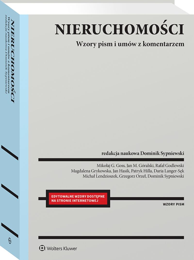 Nieruchomości. Wzory pism i umów to publikacja zawierająca wzory pism i umów dotyczących szeroko rozumianej gospodarki nieruchomościami. Dotyczą one m.in. takich zagadnień jak: prawo do nieruchomości, nabywanie nieruchomości przez cudzoziemców, księgi wieczyste, ewidencja gruntów i budynków, prawo budowlane, najem lokali, podział i scalenie nieruchomości.Zamieszczone wzory umów i pism mają za zadanie ułatwić zrozumienie istotnych dla ich treści rozwiązań prawnych.Wzory zawierają wariantowe rozwiązania z krótkim uzasadnieniami i objaśnieniami oraz odesłaniami do aktów prawnych i orzecznictwa, ukazującego rozwiązanie problemów występujących w praktyce.W obecnym wydaniu uwzględniono zmiany w ustawie o gospodarce nieruchomościami, prawie budowlanym i ustawie o księgach wieczystych i hipotece. Książka jest adresowana do prawników, pracowników organów administracji rządowej i samorządowej, geodetów, rzeczoznawców majątkowych, pośredników w obrocie nieruchomościami, zarządców nieruchomości i innych osób zainteresowanych tą problematyką.