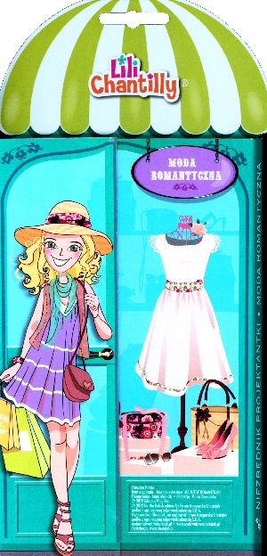 Amatorki książek o modzie i przyszłe projektantki zachwyci nowatorski produkt -książeczka przypominająca konstrukcją wejście do modowego butiku - pełnego strojów, tkanin i projektów. Pierwszy tytuł "" Moda romantyczna"" - to sklep z modą letnią, romantyczną. Drugi tytuł ""Moda wieczorowa"" przedstawia stroje wieczorowe i pozwala tworzyć własne projekty. Książeczki są zbiorem opisów strojów i porad, jak je projektować, naklejek i papierów imitujących różne tkaniny. Oprócz tego, dziewczynki znajdą w nich mnóstwo ciekawostek z historii mody. W ""Niezbędniku projektantki"" młode damy znajdą:- 48 stronicowy blok do kreowania,- zeszyt projektantki z informacjami o modzie i wskazówkami dotyczącymi projektowania- 4 plansze z naklejkami oraz planszę z szablonem.