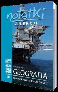 Notatki z lekcji Geografia - geografia społeczno-gospodarcza świata nowe zmienione i poprawione wydanie popularnej serii Notatek z lekcji sprawdzian kompetencji do każdego działu geografii możliwość ocenienia poziomu własnej wiedzy 43 zagadnienia z dziedziny geografii społeczno-gospodarczej świata: podział polityczny, człowiek i środowisko, procesy społeczno-demograficzne i urbanizacyjne, gospodarko żywnościowa, gospodarka pozarolna