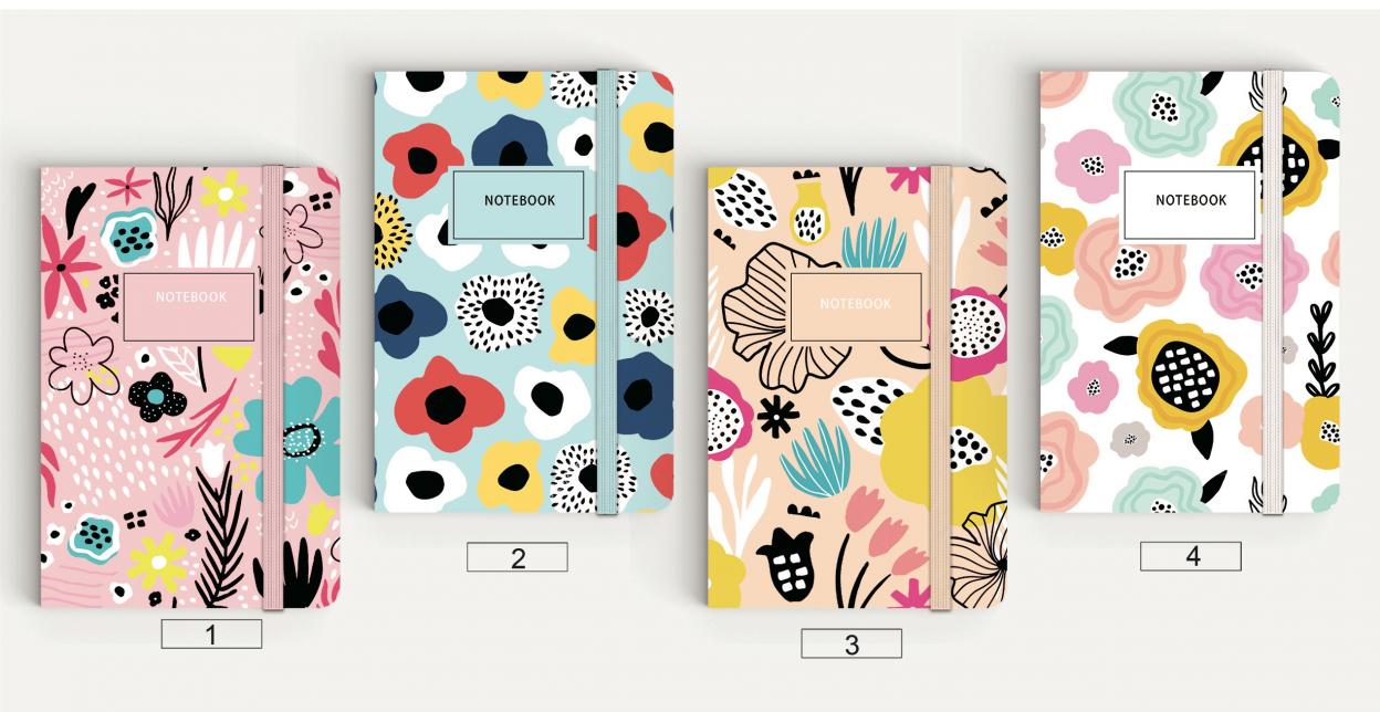 Notatnik A5, 96 kartkowy z gumką w twardej okładce.