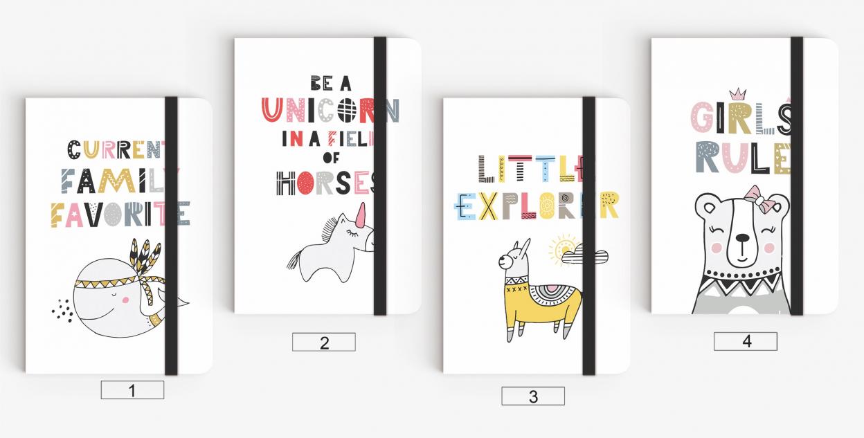 Notatnik 96 kartkowy z gumką w twardej okładce.