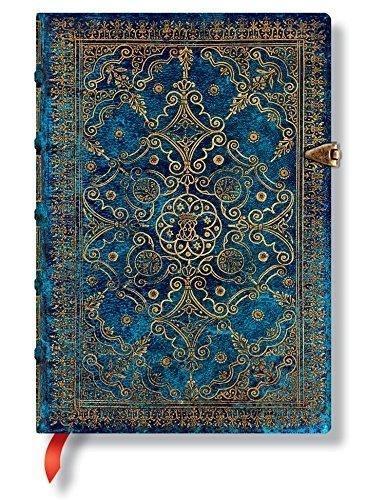 Notatniki Azure z serii Equinoxe marki Paperblanks. Idealne dla poważnych osób. Pięknie zdobiona okładka o przyjemnej, zmysłowej fakturze zaspokoi najbardziej wygórowane zmysły estetyczne. Kartki wykonane są z wysokiej jakości papieru bezkwasowego w kolorze ecri. Wewnątrz znajduje się atłasowa czerwona wstążka, dzięki której z pewnością otworzymy notatnik na właściwej stronie oraz koperta na wizytówki i paragony. Wszystkie kartki są zszywane.
