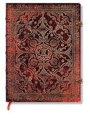 Notatniki Carmine z serii Equinoxe marki Paperblanks. Idealne dla poważnych osób. Pięknie zdobiona okładka o przyjemnej, zmysłowej fakturze zaspokoi najbardziej wygórowane zmysły estetyczne. Kartki wykonane są z wysokiej jakości papieru bezkwasowego w kolorze ecri. Wewnątrz znajduje się atłasowa czerwona wstążka, dzięki której z pewnością otworzymy notatnik na właściwej stronie oraz koperta na wizytówki i paragony. Wszystkie kartki są zszywane.