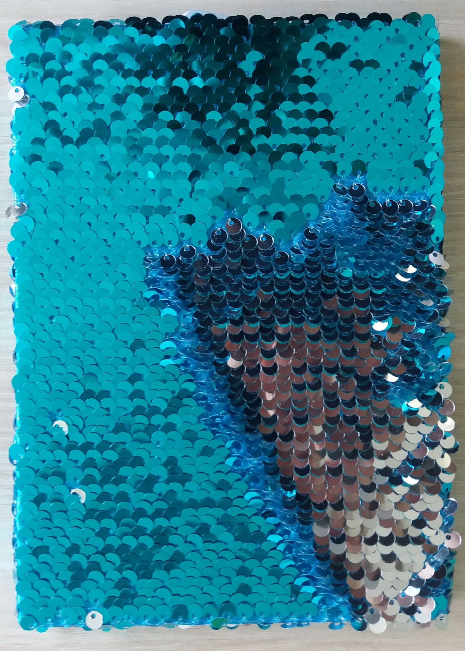 Notatnik cekinowy niebieski, kartki w linie, 60 kartek.