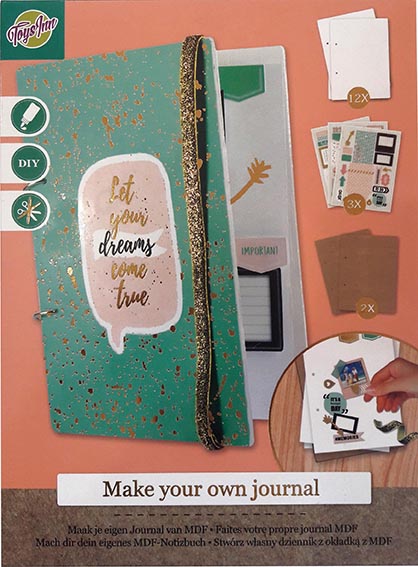 Ten dziennik z okładką z płyty MDF daje duże pole do wykazania twórczych umiejętności. Możesz pomalować przód i tył na biało i okleić je dołączonymi papierowymi elementami. Albo pomaluj zewnętrzną stronę według własnych upodobań.