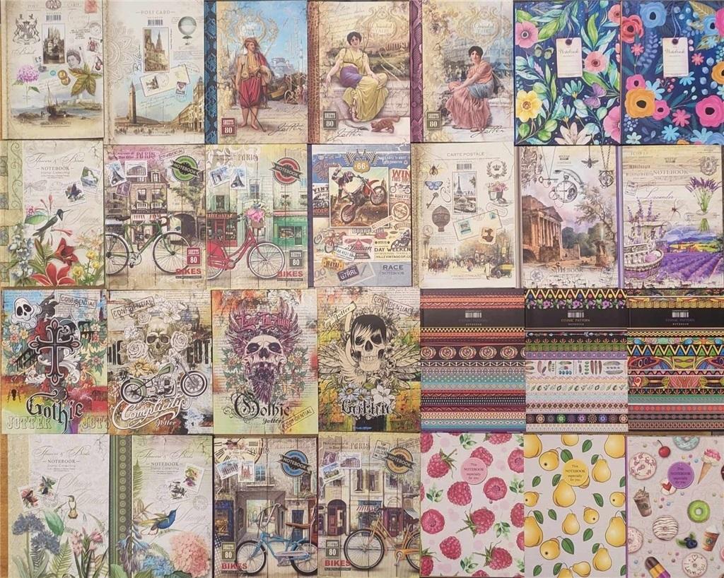 Notatnik szyty A5, 80 kartek w kratkę, usztywniana oprawa, mix wzorów, wzór wysyłany losowo.