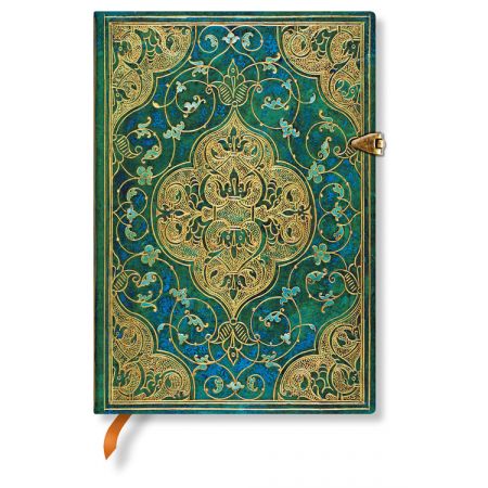 Notatnik Turquoise Chronicles Midi Lined. Niezwykłej marki Paperblanks. Pięknie zdobiona wytłaczana okładka o niesamowitej fakturze. Wewnątrz na tylnej okładce koperta na drobne notatki.Satynowa wstążka jako zakładka. Papier ekologiczny. Notatnik szyty.