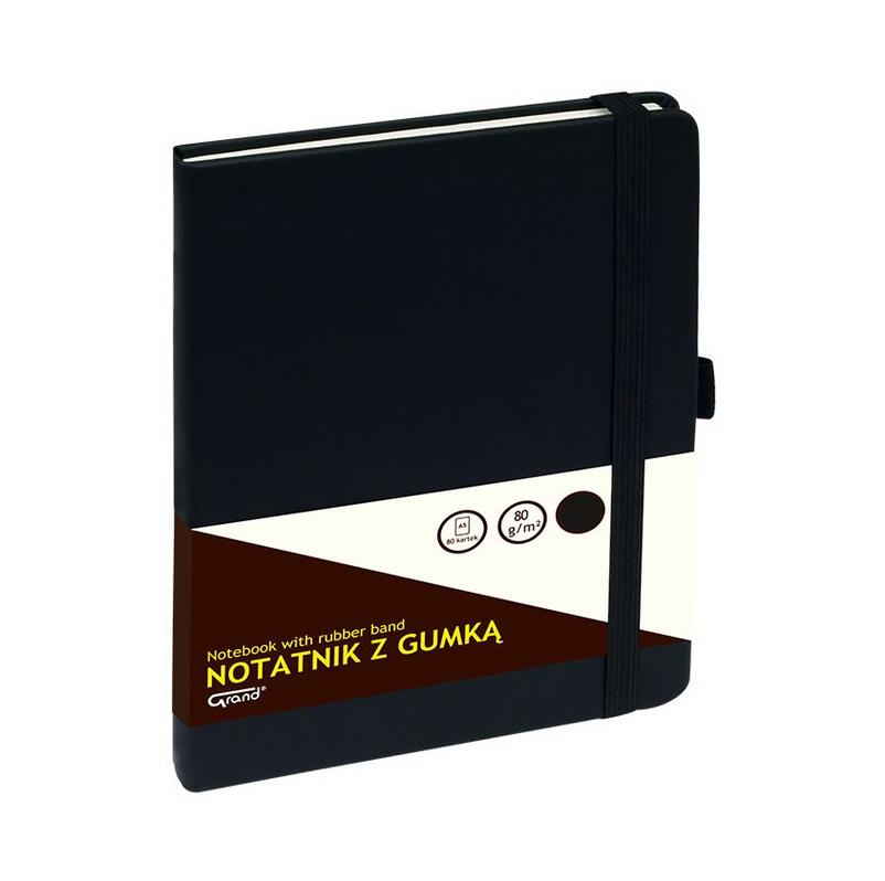 twarda oprawa grzbiet szyto-klejony liniatura: kratka uchwyt na długopis i wewnętrzna kieszeń wewnątrz notatnika wygodna zakładka oprawa czarna gramatura 80 g/m2 format A5 80 kartek