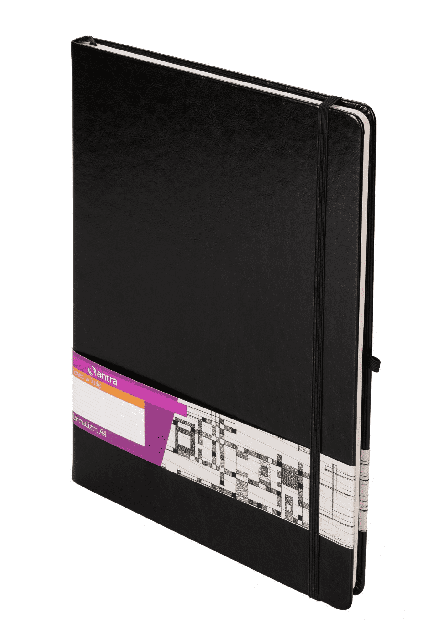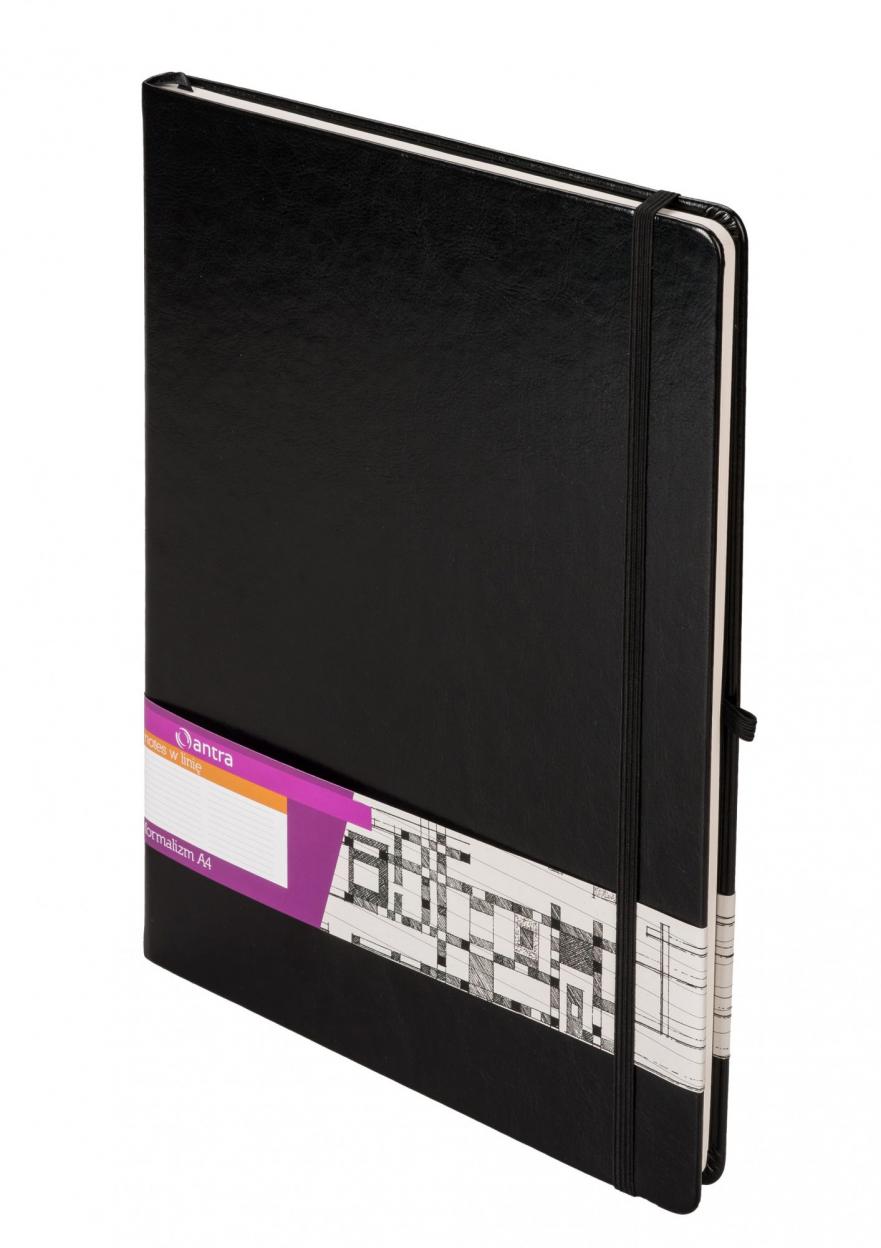 Oprawa twarda, skóra ekologiczna. Papier 80 g. Wyklejka notesu oraz kieszeń na ważne, luźne notatki wykonana z ozdobnego papieru w kolorze czarnym. Wstążka, gumka zamykająca i szlufka na długopis w kolorze okładki. Ilość stron: 192 Wymary: 210 x 295 mm